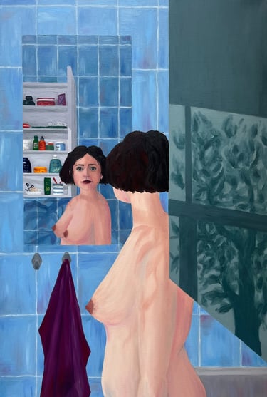 The bathroom, usually perceived as a purely functional place, becomes a setting for routine, comfort, and transformation. Behind closed doors, a more authentic dimension unfolds: ordinary gestures, half-finished conversations, shared silences.